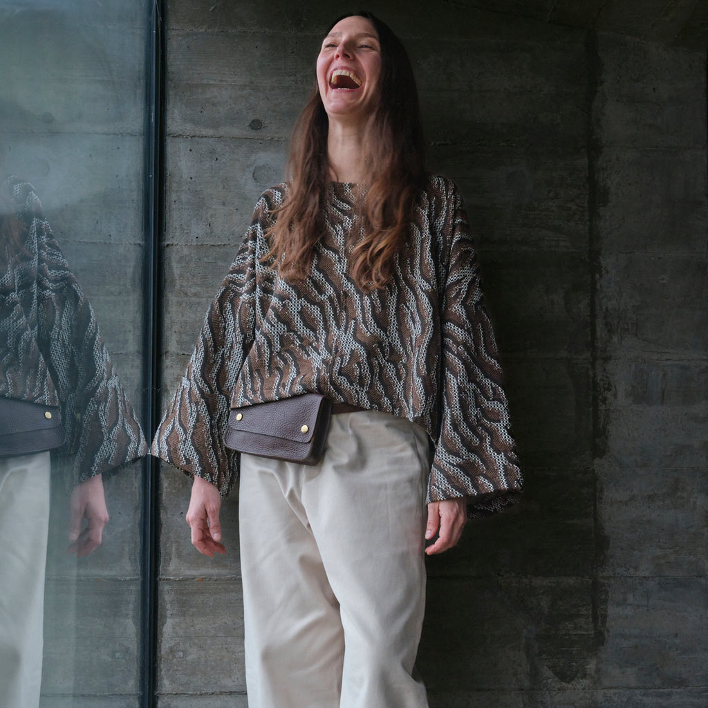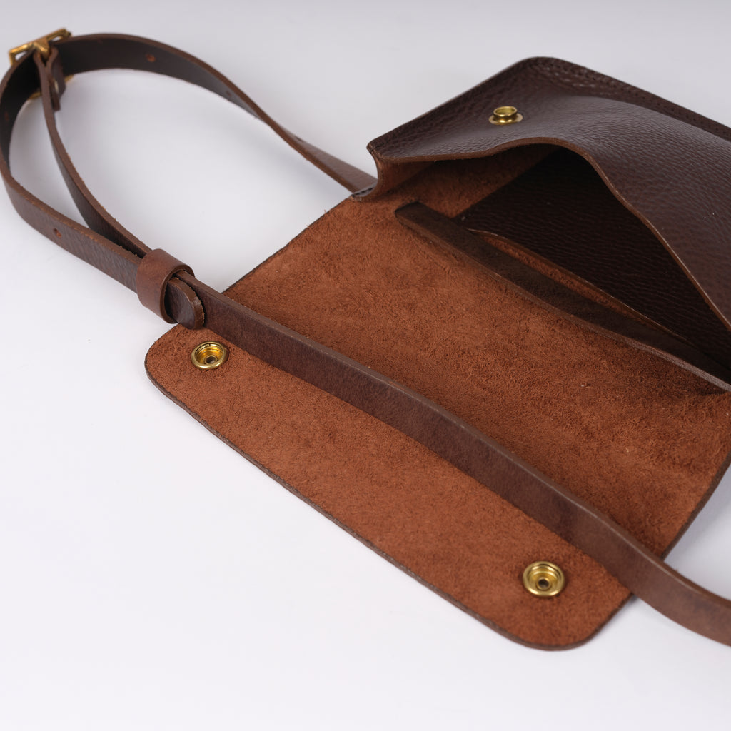 The Voyage Bag is made in England with tumbled Italian vegetable tanned leather with an adjustable leather strap and double popper closure. Great for everyday use and running errands as it is worn across the body. A perfect pairing with one of our bucket bags for the larger essentials.