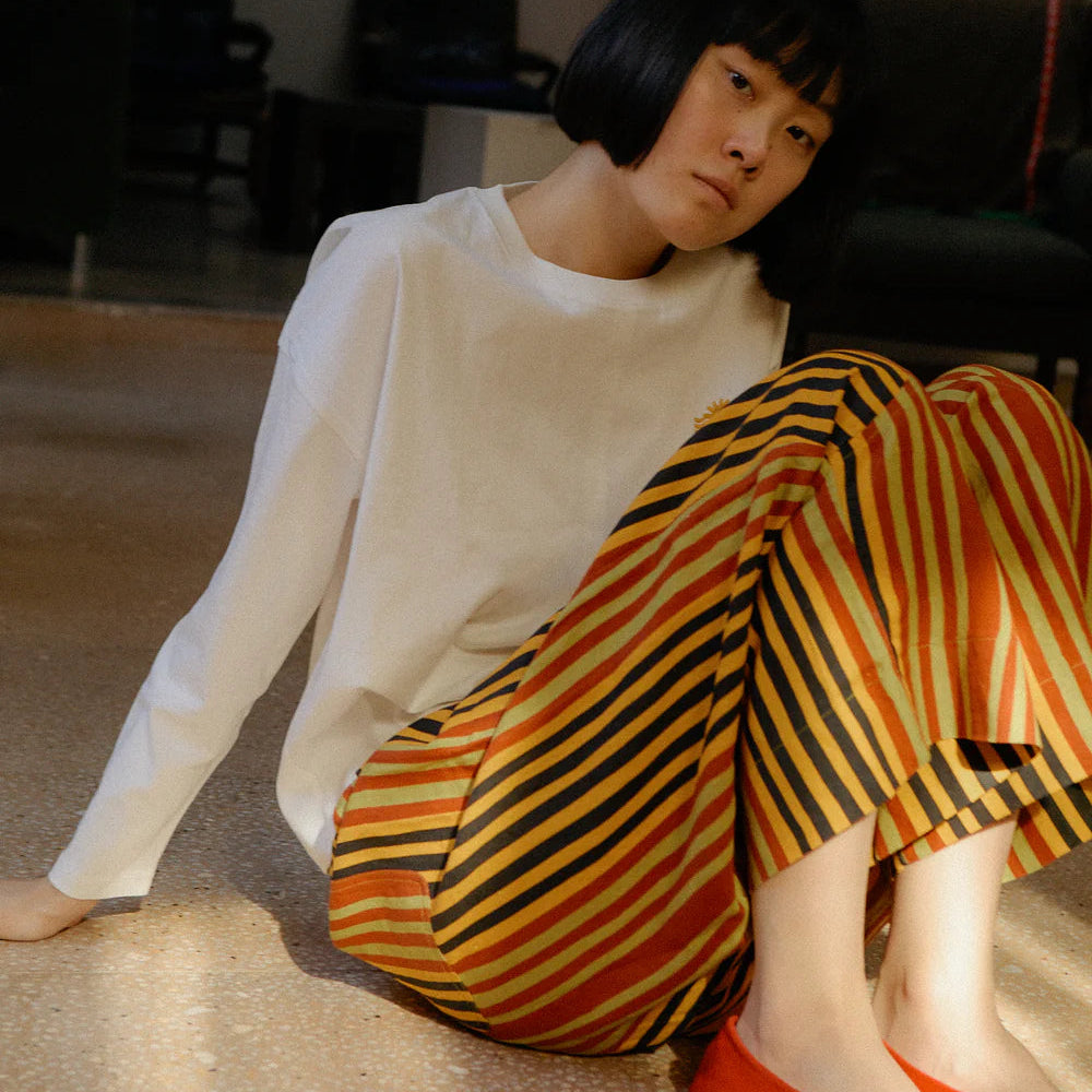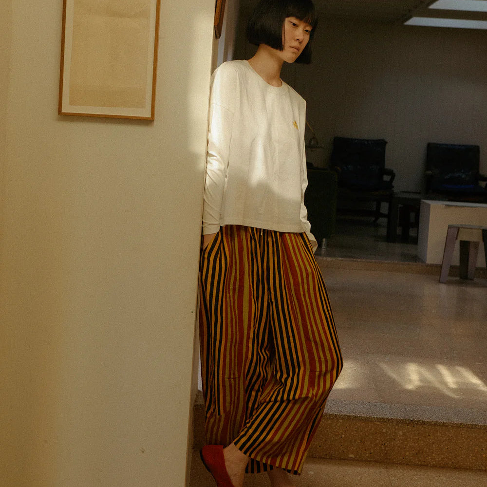Loungewear. Barrel leg. High-waist. Drawstring. Striped Trouser.