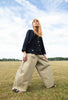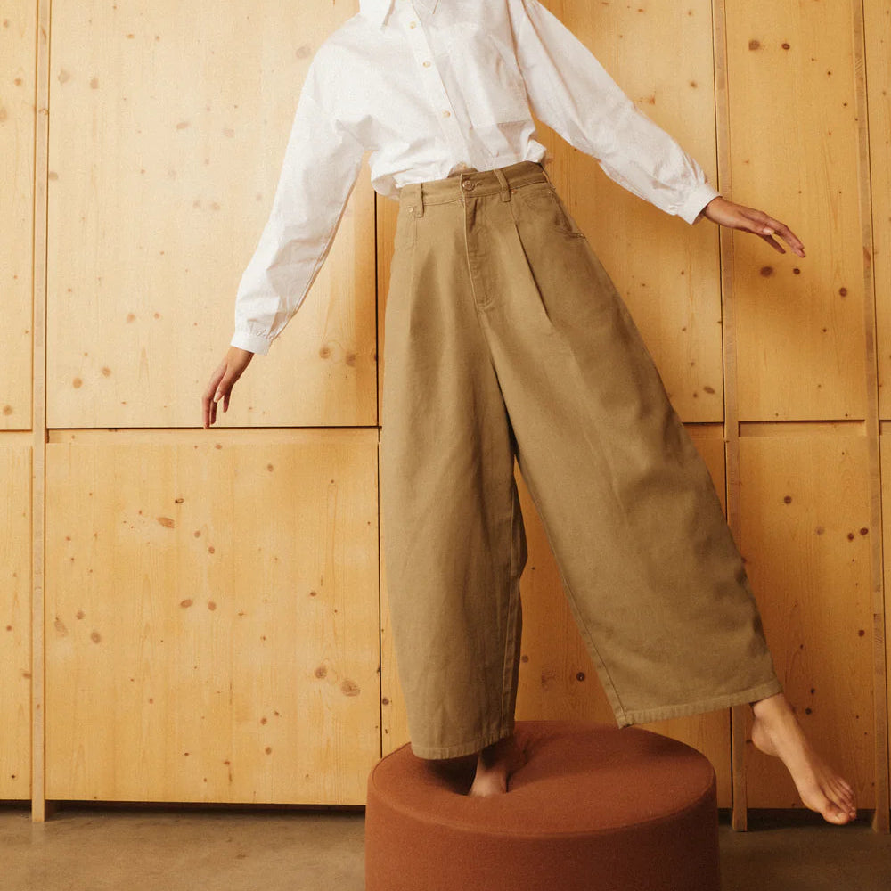 Models are wearing a size UK 8. We have designed this style with a fitted high waist and voluminous legs. We would recommend sizing up for a more relaxed fit around the waist. Please refer to our size guide below for measurements.
