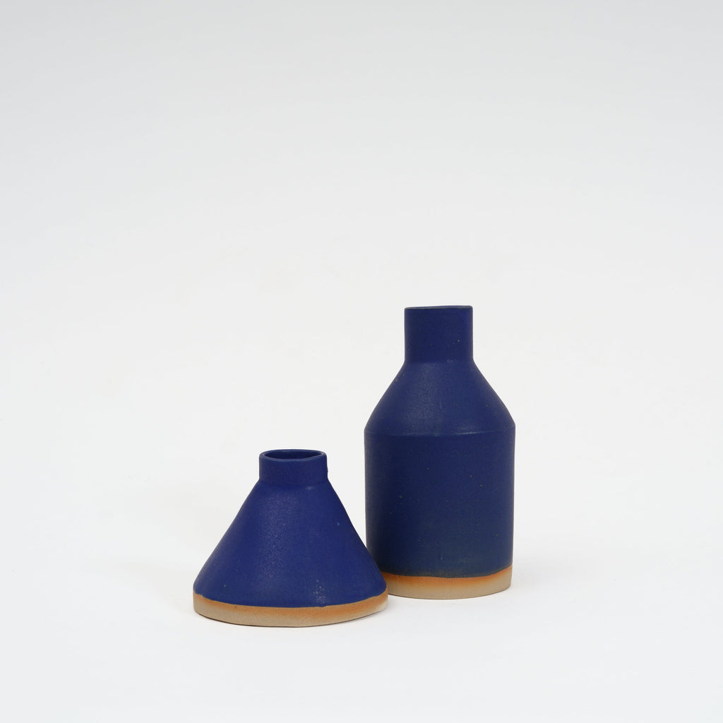 Cone vase in blue with a blue interior by Sophie Alda