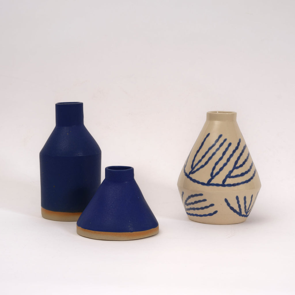 Diamond vase in stoneware and bright bright blue.