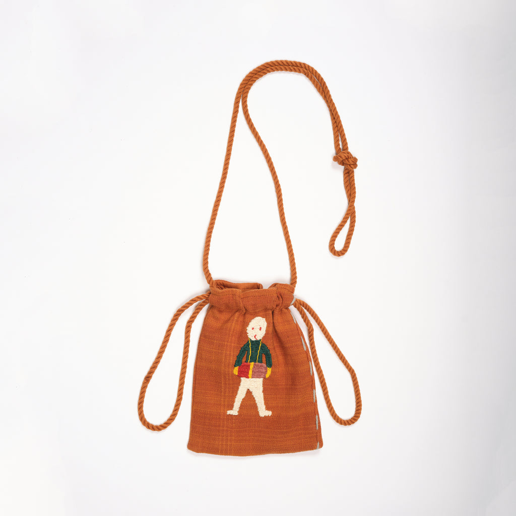 Designed by Après Ski and sewn in Barcelona from a cotton tribal textile made with a Naga cotton fabric. Embroidered fabric from Burma with zip. This pouch bag has a 50cm shoulder strap for easy carrying and a 26.5cm drawstring to close it.