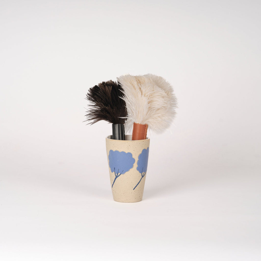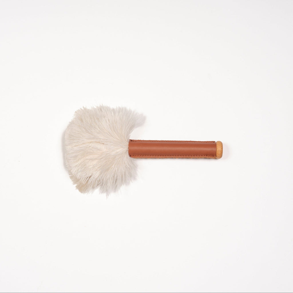 This small, handcrafted ostrich feather duster implement with leather cuff can be used as a duster, of course.