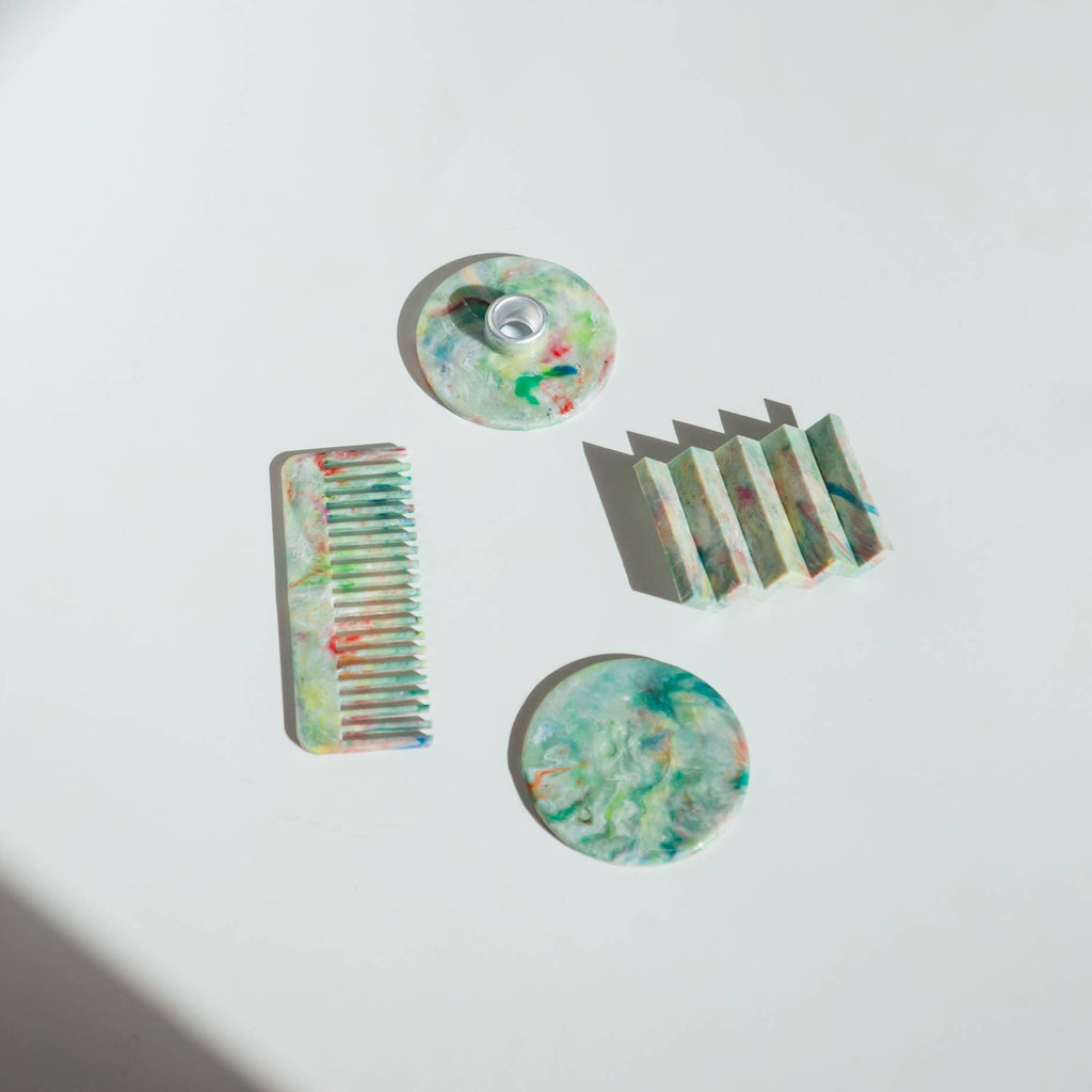These recycled combs are made from the plastic waste of households across the UK.