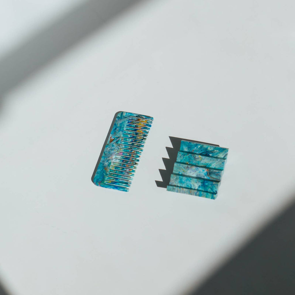 Every comb is unique and is slightly different due to the process involved in creating these recycled combs. What you receive will have the same colour combination as below.