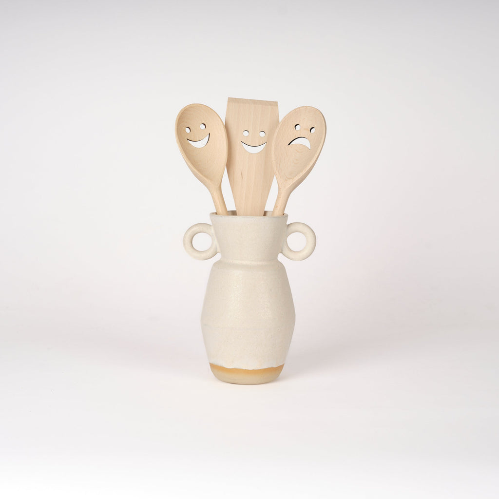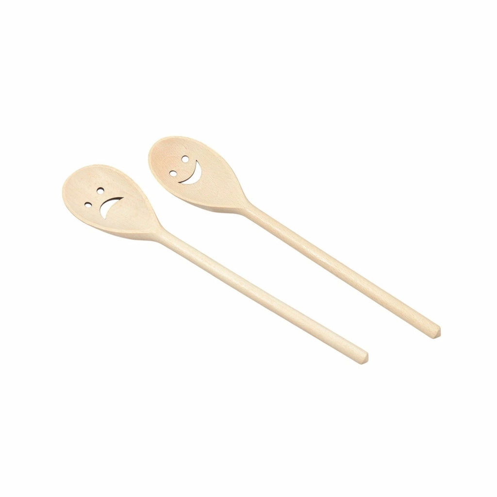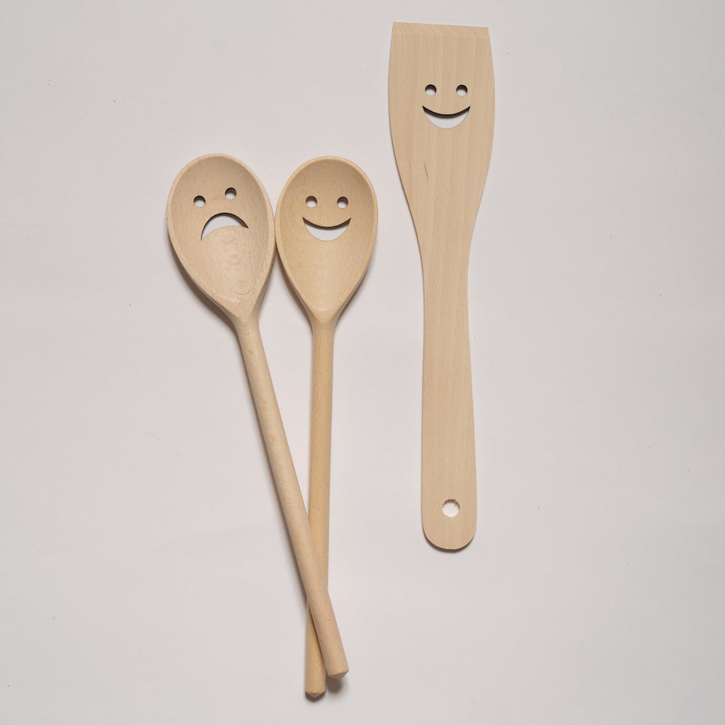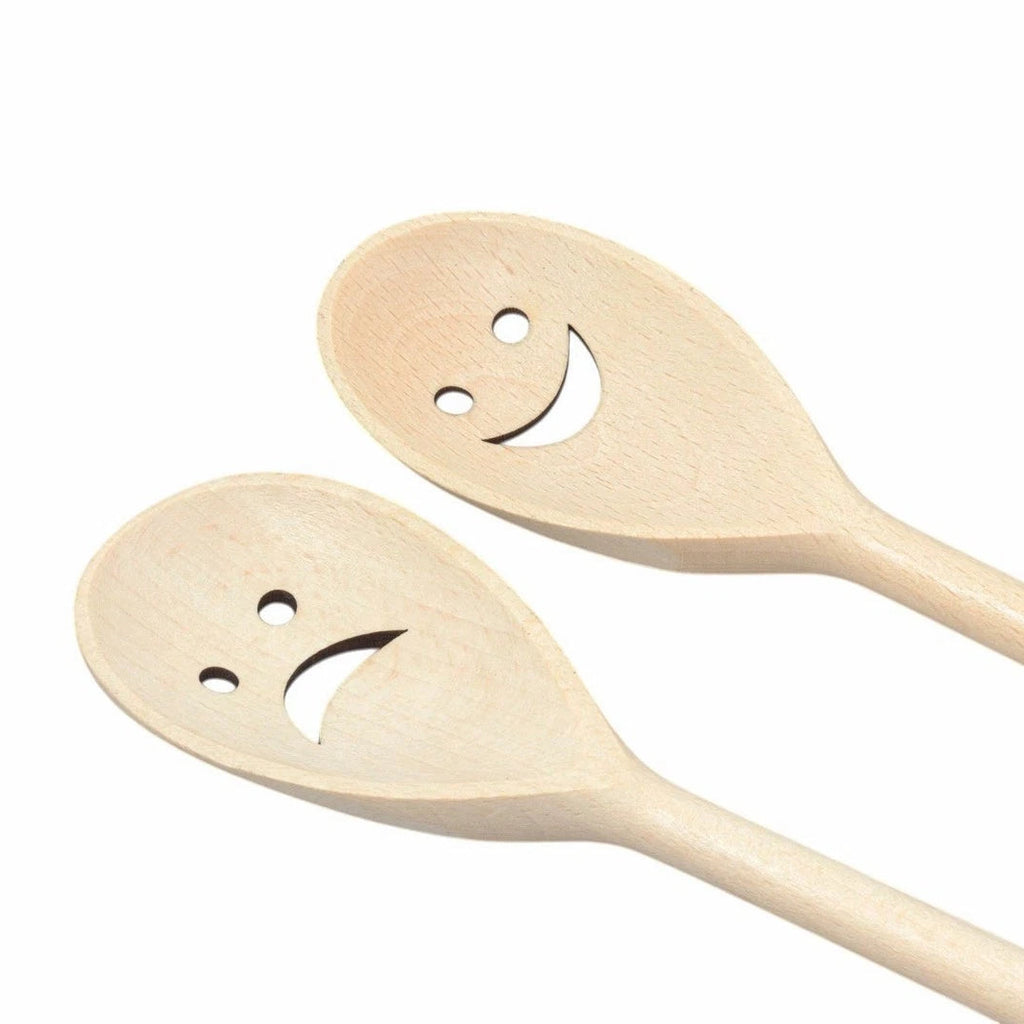 Beech wooden Swedish kitchen spoons - Set of Smiley faces Sad & Happy