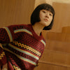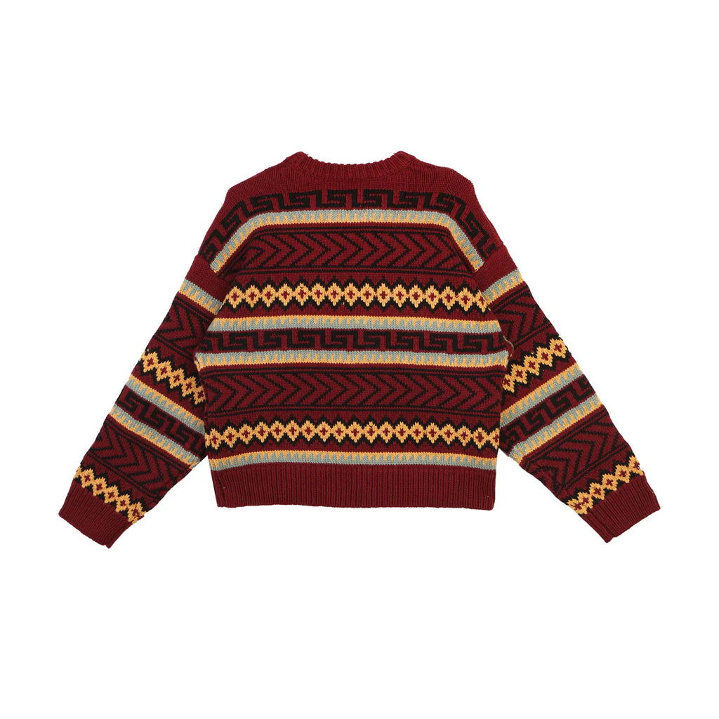 Wool. Knitwear. Burgundy Intarsia. Boxy shape.
