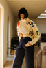 100% Organic Cotton. Machine wash on a cold gentle cycle with similar colours.