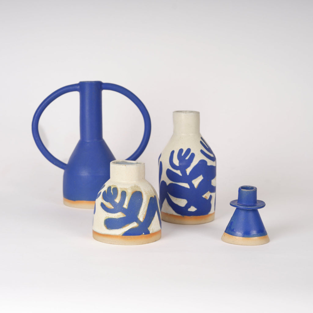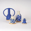 Hand made bottle vase, glazed in blue and white eucalyptus pattern