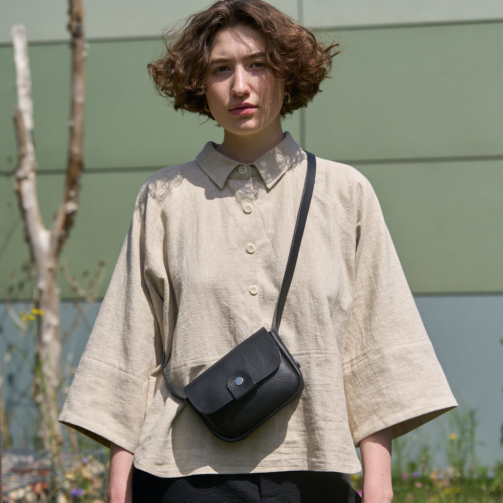 Designed for versatility, it has an adjustable leather strap with buckle, allowing for shoulder or cross-body wear. Unlined with a smooth natural leather interior, it’s perfect for pared-back daily use.