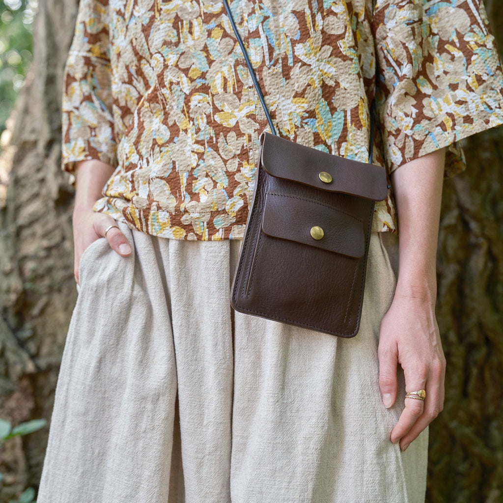 Our Chocolate Scout Bag is a utilitarian-inspired double flap crossbody bag for all your everyday belongings. It features a lower pocket with a built-in gusset, and both flaps close with a secure popper fastening. Made from soft Italian vegetable tanned leather with brass hardware in silver colour, and a leather cord shoulder strap.