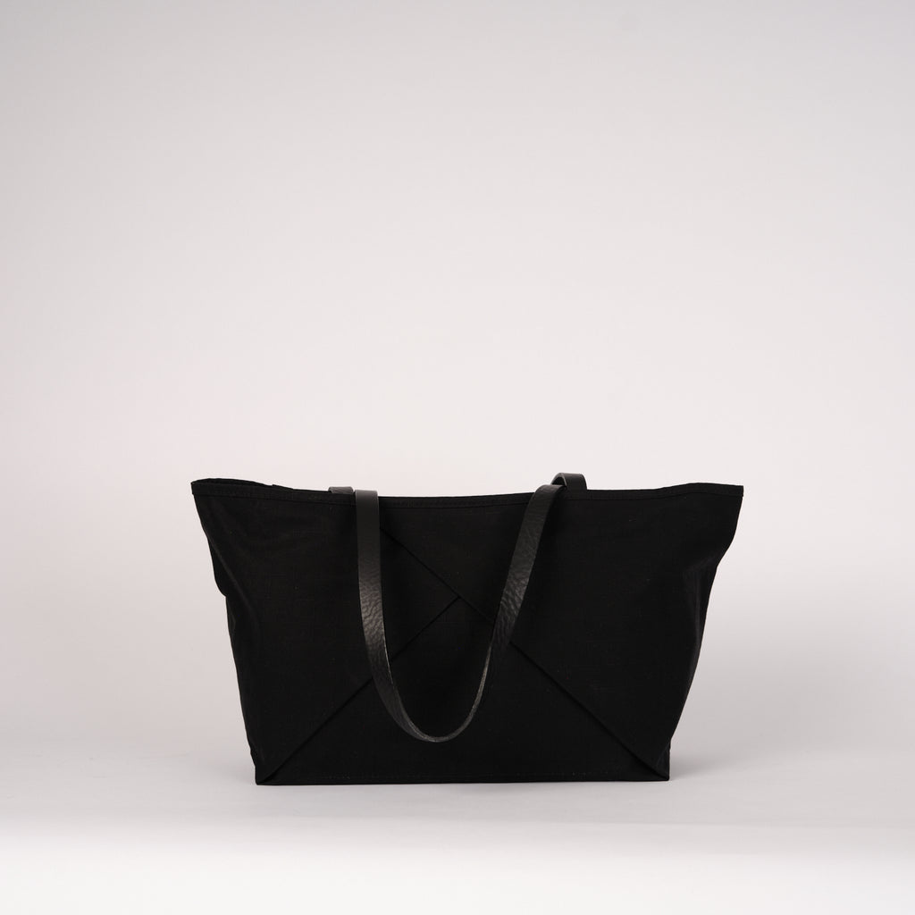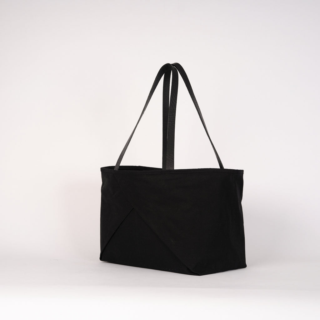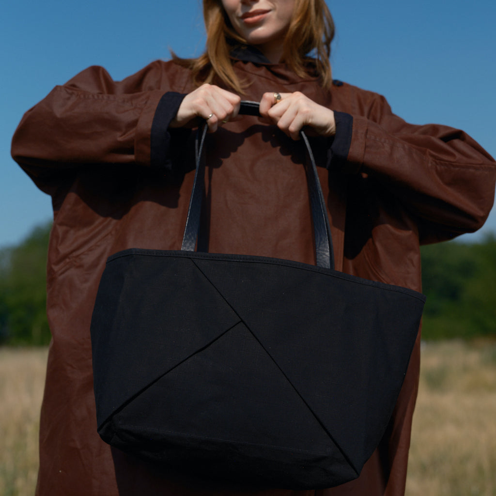 A striking yet understated everyday tote, crafted from a single piece of ripstop waxed cotton and folded into shape using origami-inspired construction. The clever folds create natural volume and form without seams or panels, offering both structure and simplicity in design. Made from durable, water-resistant waxed cotton, the bag features sturdy vegetable-tanned leather handles that soften beautifully with use. Inside, a large internal patch pocket keeps your essentials close to hand.