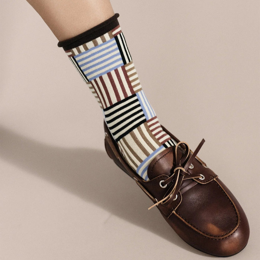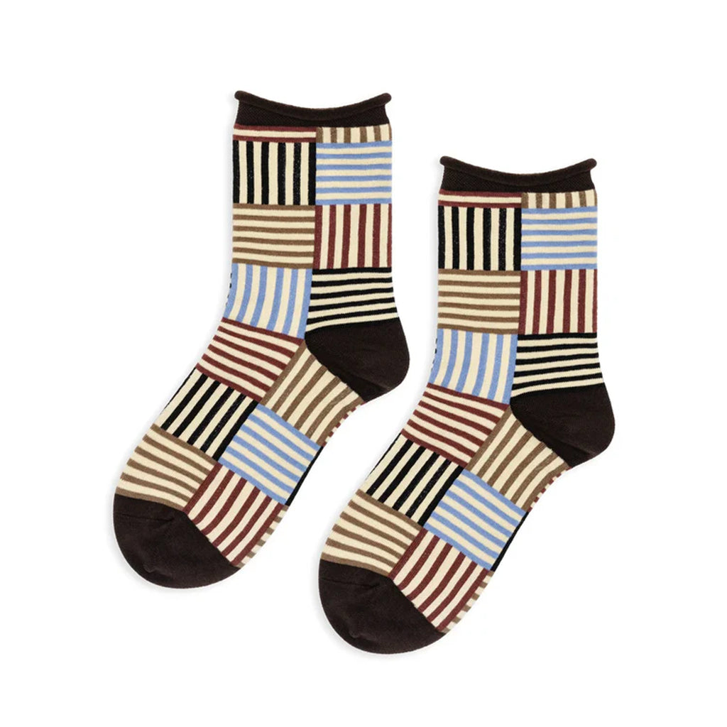 Hansel from Basel Striped Tile crew socks in brown