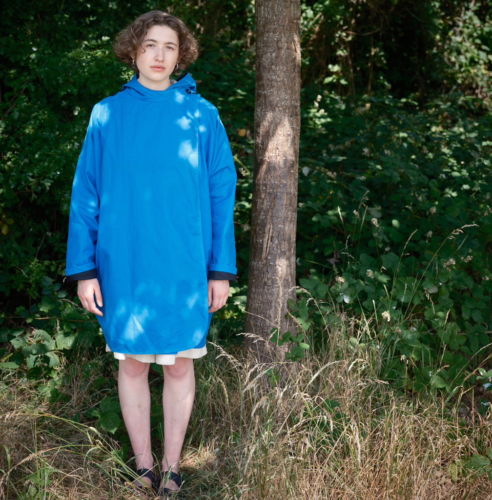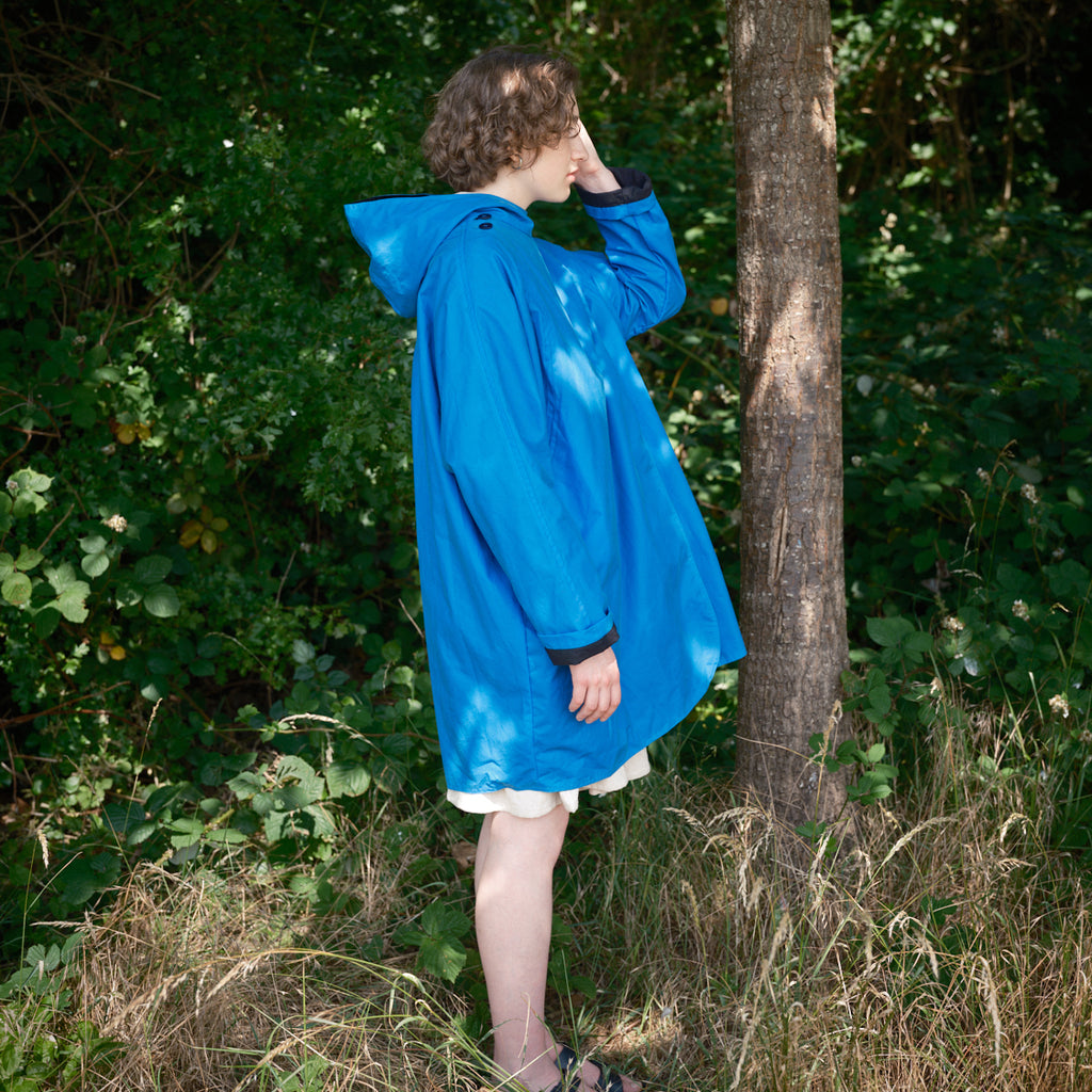 A Kate Sheridan staple, the Batwing Coat is a timeless, practical and minimal design. A modern twist on the traditional English heritage rain mac, this features an oversize fit, batwing sleeves, a large hood and deep side pockets. Fasten by overlapping the front panels that button up on the shoulders. Long sleeves can be turned up to reveal the lining. The Batwing Coat is a popular companion on bike rides, dog walks or anytime you want to be comfortable and dry as well as look good. Made in the North of England from water resistant British waxed cotton with slightly antique look finish, which will age beautifully with wear.