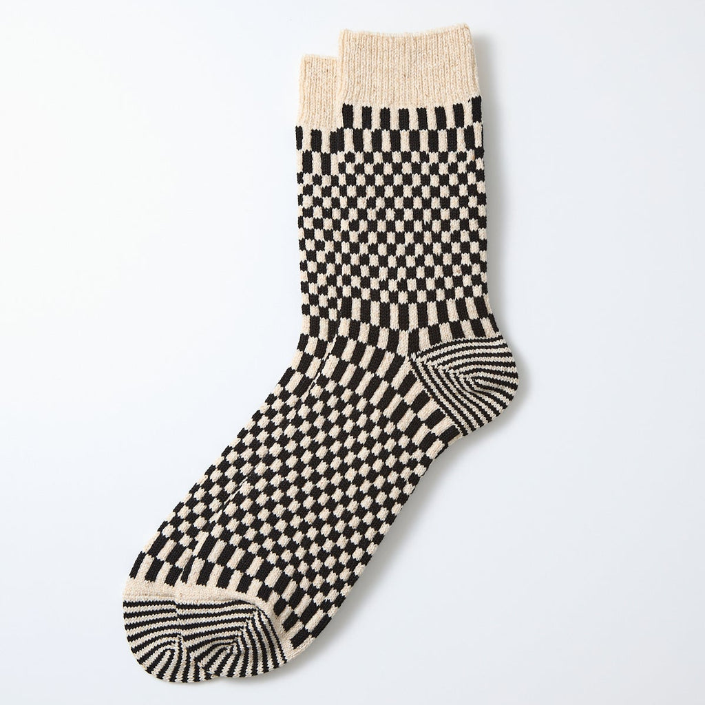 This pair of socks with an eye-catching jacquard-knit gingham check pattern is a must-have for a simple coordinated look. The spring and summer colors will add color to your feet. Please avoid using a dryer as it may cause shrinkage.
