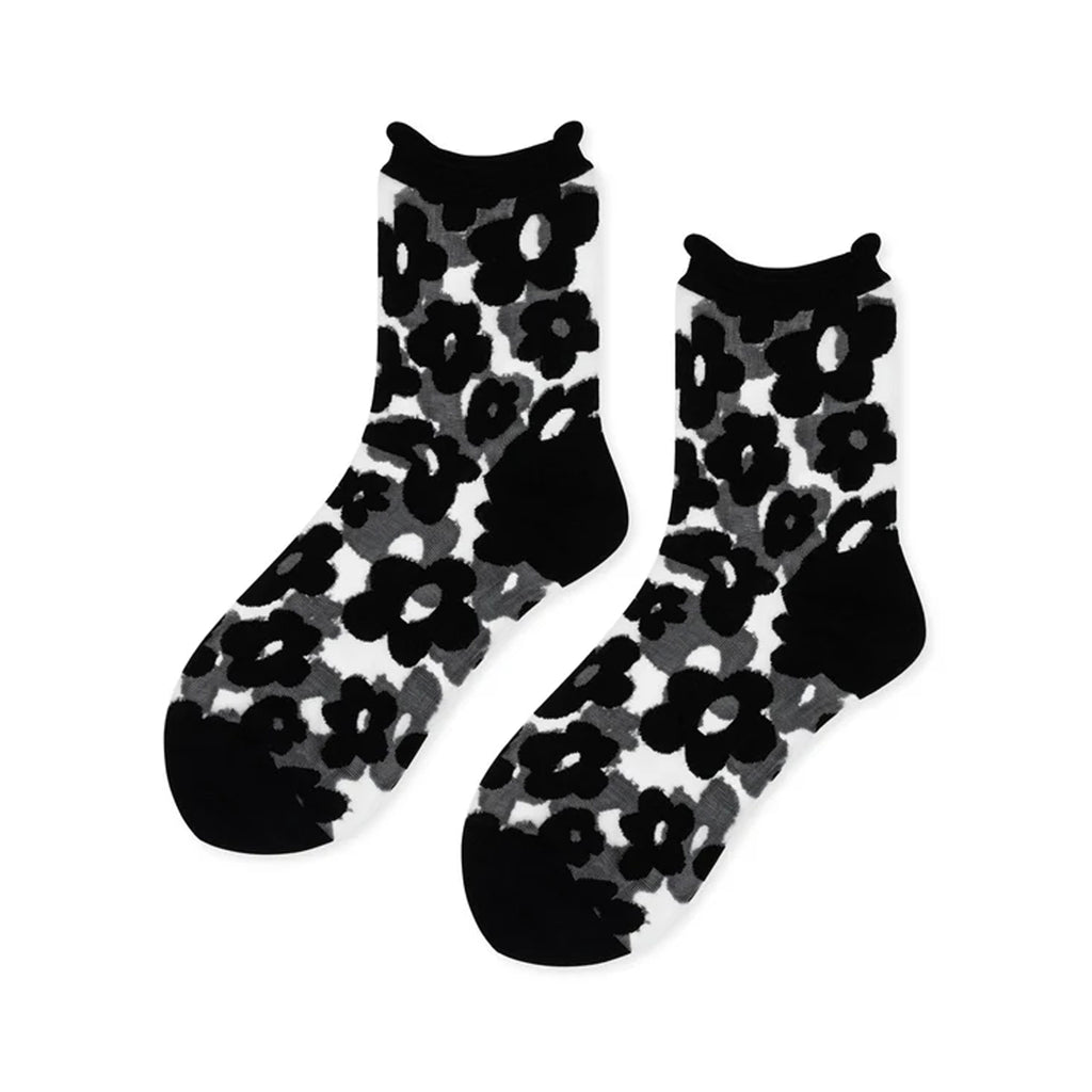 Discover your flower power with the Pop Sheer Short Crew, where playful floral patterns meet a sheer, lightweight fabric that feels like a breath of fresh air. These roll-top crews add a fun, flirty touch to any outfit, perfect for brightening up your day with a pop of color and style. Whether you're layering or wearing solo, they bring a sheer delight that's as comfortable as it is charming. Embrace the joy of floral fashion with a twist of sheer sophistication!