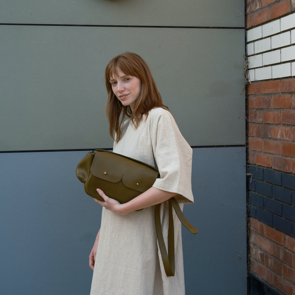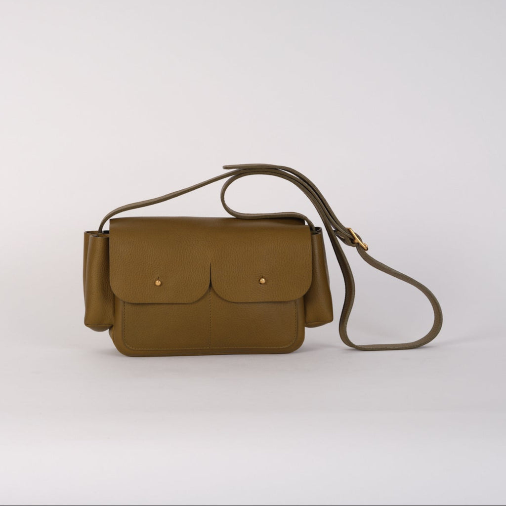 The Ramble bag is crafted from tumbled vegetable-tanned leather and designed with practicality in mind. A front pocket with two compartments, side pockets, and multiple Sam Browne fastenings offer plenty of secure storage, while the spacious open interior easily holds your daily essentials - and then some. Finished with a wide leather strap for comfortable wear, it’s the ideal carryall for those who love a pocket. Functional, durable, and ready to roam.