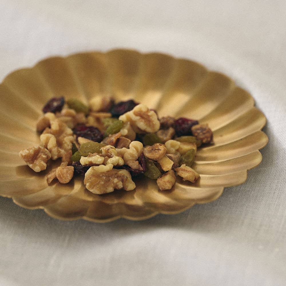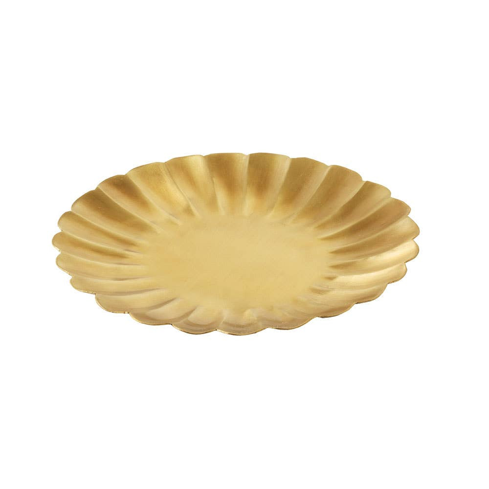 This brass tray features a petal-like wave design around the edges. Perfect for daily use, whether it's holding keys, accessories or serving treats.