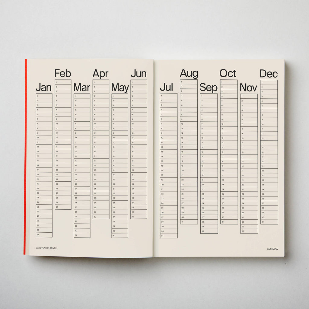 Kinshipped's planners are printed sustainably in the UK using smooth, blot-free music sheet paper internally and a lovely red, and foiled, board on the cover. These planners also have a reusable dust jacket available to protect the cover from bends, water and general wear and tear and can be used on another A5 book the following year. Each planner includes: - a 2026 year planner overview to mark particular days - a quick reference 2026 & 2027 calendar to check what days your dates land on - day per page - to-do list space per day - 'remember' list space per day