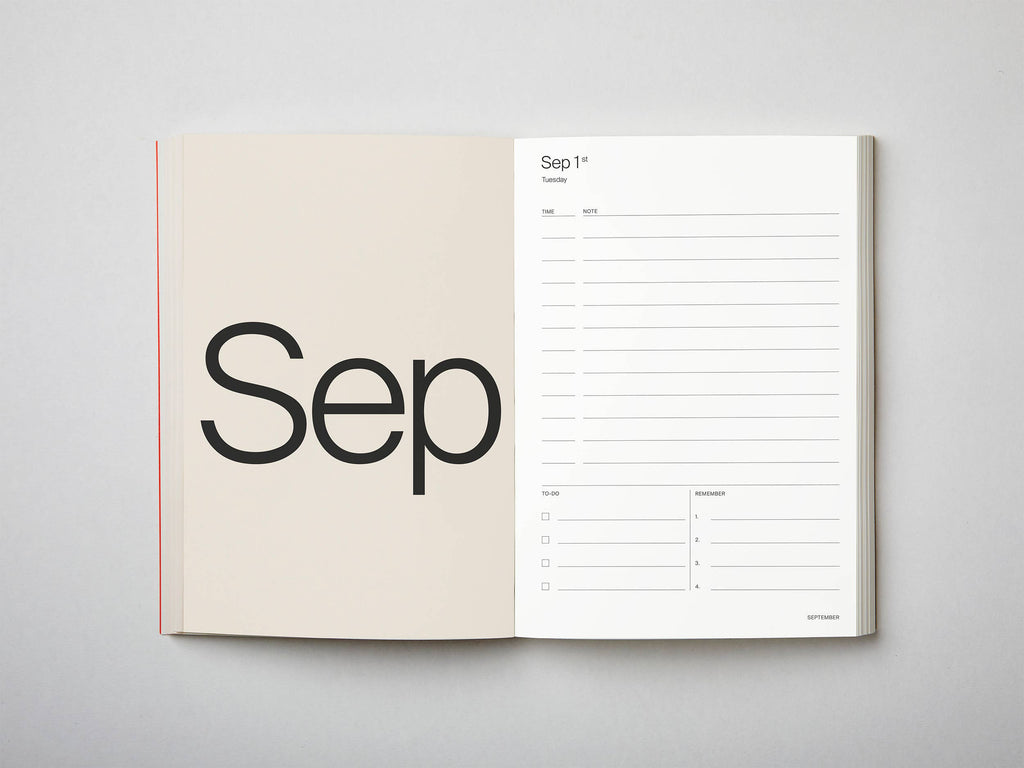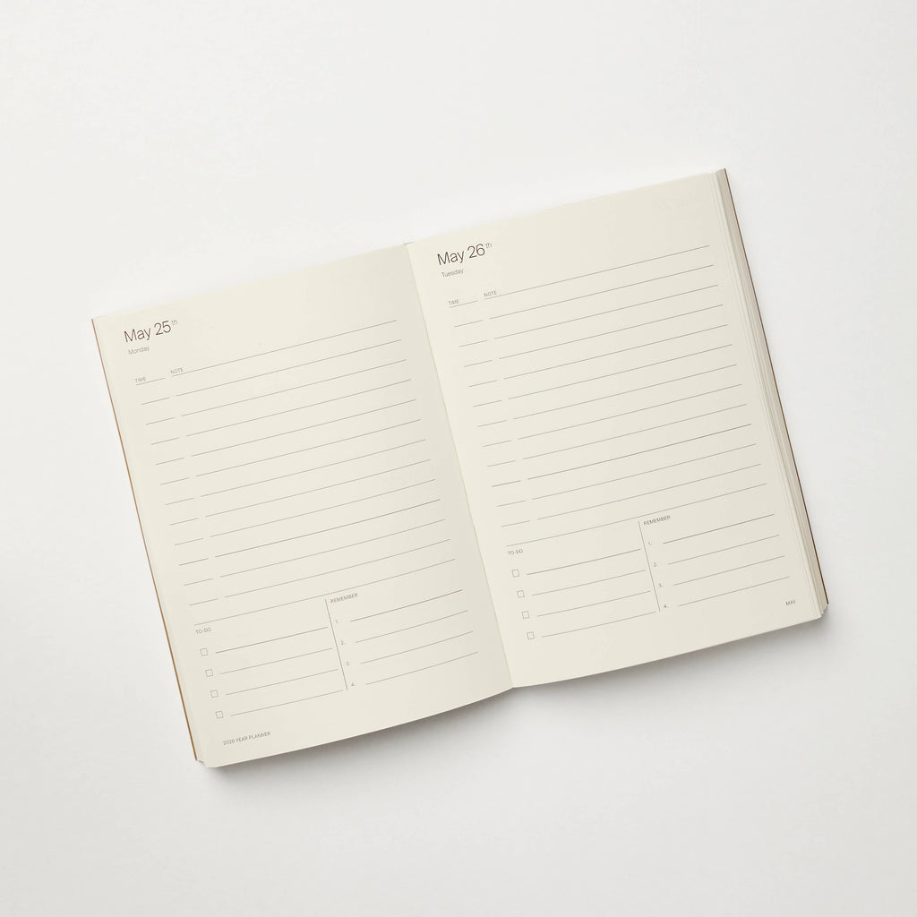 A beautiful muted nut-brown cover with punchy black foiling. This diary is perfect for those looking for a day-per-page planning tool that lays flat (best for those who are left handed).