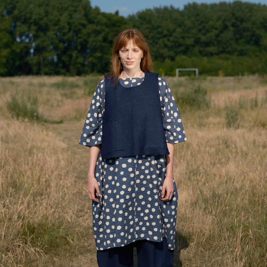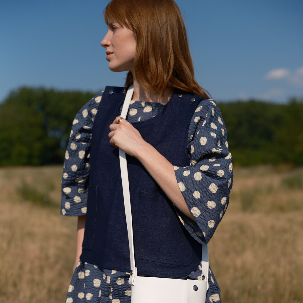 The Pop Tabbard is a super layering piece to have in your wardrobe - adding warmth and a bit of interest to any outfit. Crafted in the north of England, the vest is fastened with poppers at the shoulders and sides.