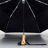 100% recycled fabric * Sustainably sourced FSC certified birch handle * Wind Resistant - designed to give, not break, and pop back into shape * Automatic Open Button - for easy one-hand deployment with the touch of a button * High-strength Steel Frame * Compact & Lightweight - fits easily into a tote bag and a bag pack.