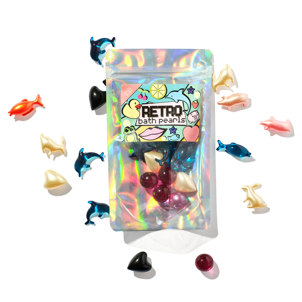 Retro Bath Pearls! Pack of 30 Mixed Shape and Scent Bath Pearls. Variety of up to 15 different shapes - but ultimately it is luck of the draw. Animals, Stars, Hearts and Pearls in various scents.