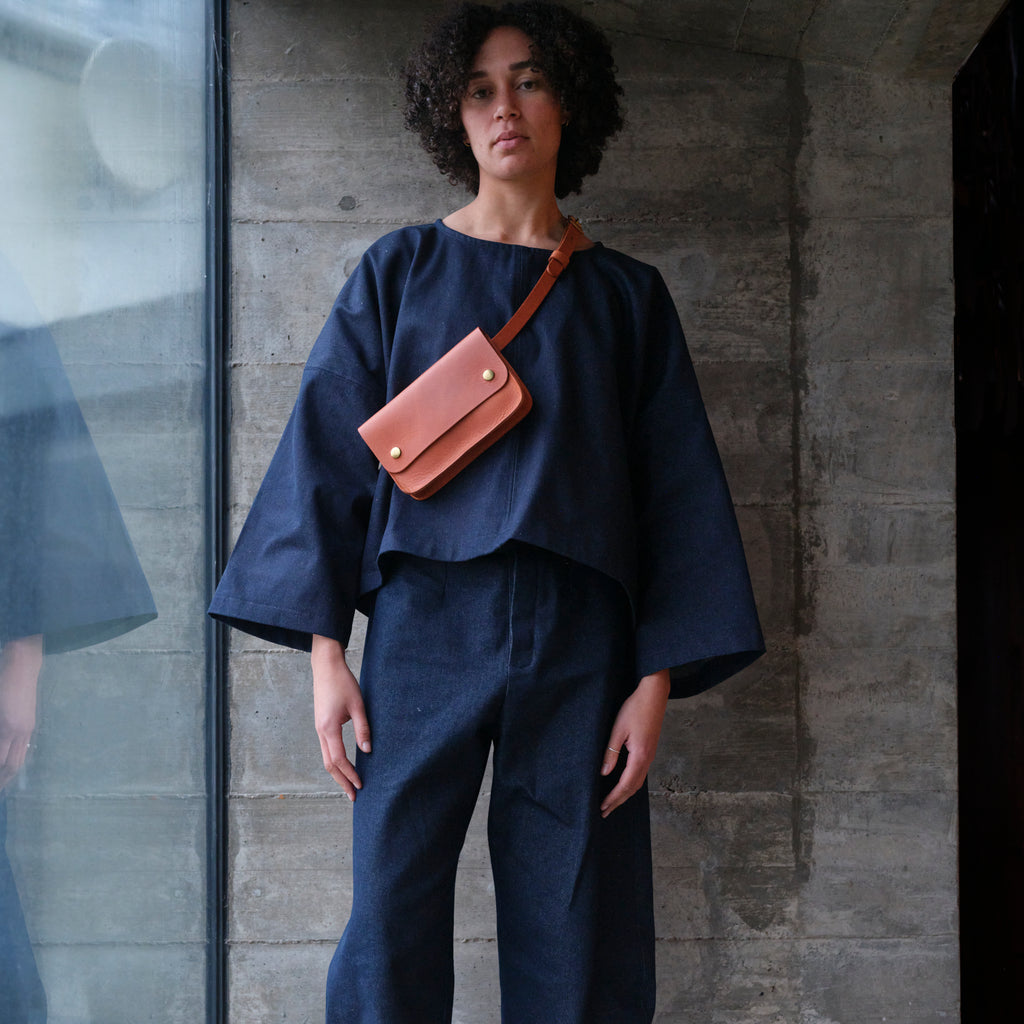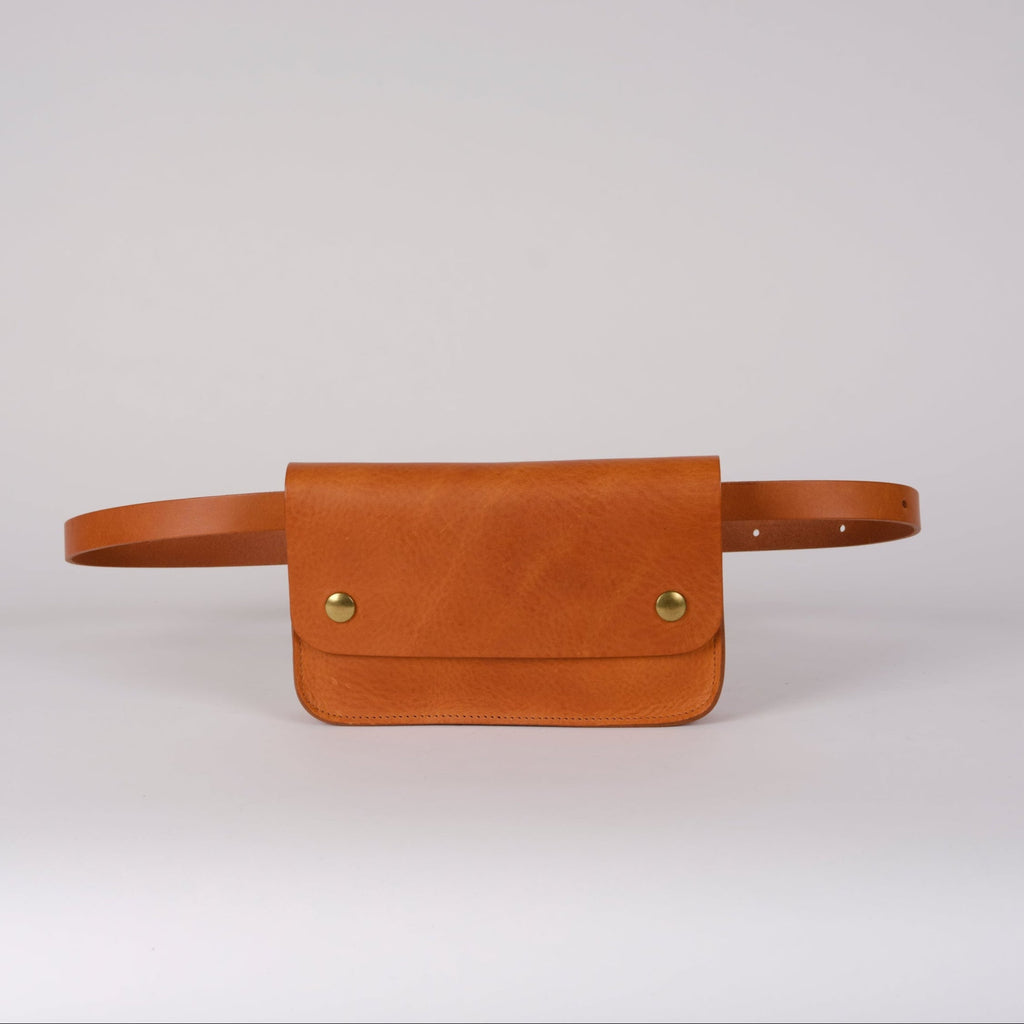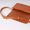 The Voyage Bag is made in England with tumbled Italian vegetable tanned leather with an adjustable leather strap and double popper closure. Great for everyday use and running errands as it is worn across the body. A perfect pairing with one of our bucket bags for the larger essentials.