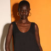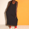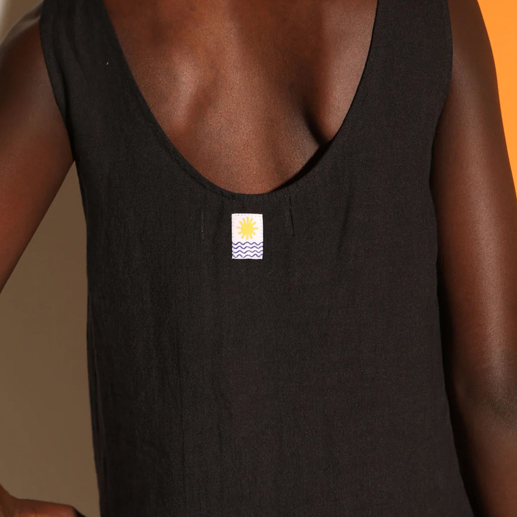This mid length basic linen dress is the perfect summer smock. Lightweight, breathable with side pockets and our signature sun and wave woven patch on the back.