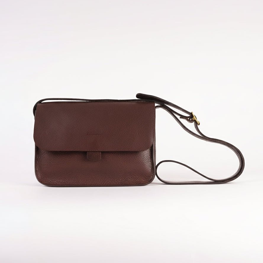 Hello Midi Tab Bag! Based on our bestselling Tab bag, the Midi is that little bit roomier and features an internal and external pocket, magnetic closure and has an adjustable buckle strap finished with Italian brass hardware. Made in England from Italian vegetable tanned leather with a tumbled texture.