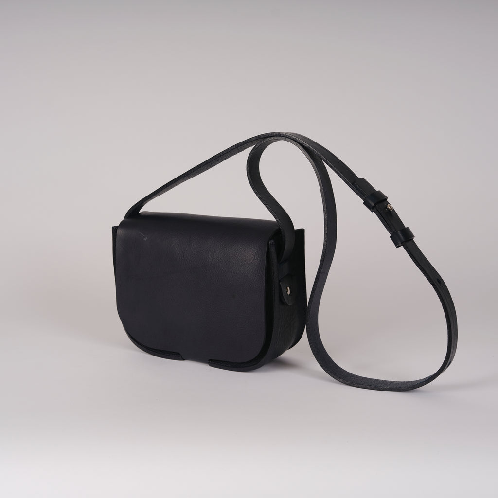 We've updated our classic Frame bag to be more minimalistic. A simple elegant shaped bag suitable for day or night crafted from Italian vegetable tanned leather, featuring a double buckled strap with half circle side details. Now with a single popper closure that extends from the flap to the underside of the body.