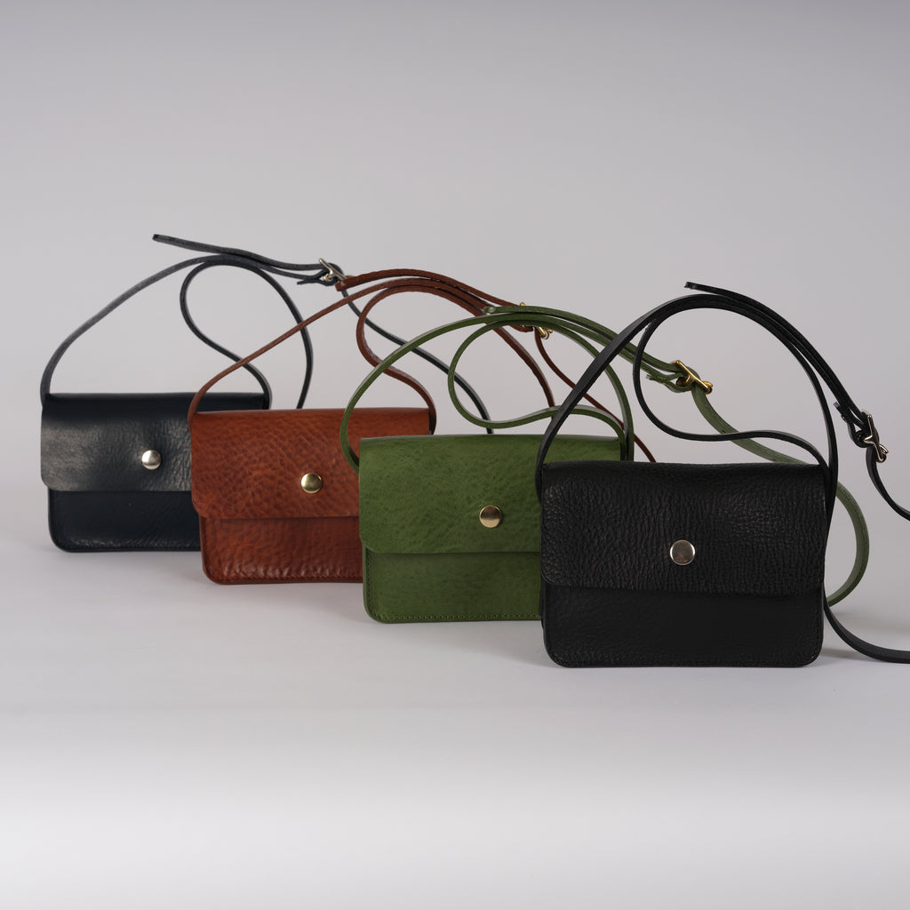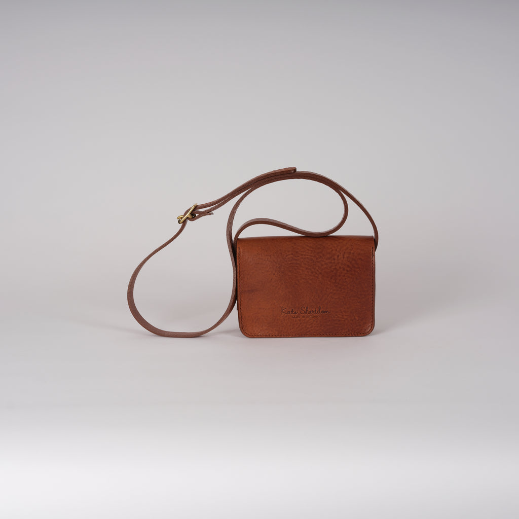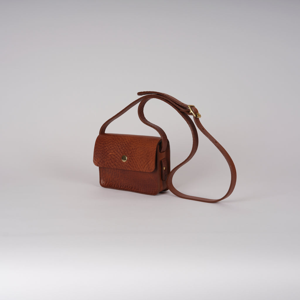 Meet the baby of the Double Dot bag: the Mini Dot bag, made from beautiful soft vegetable tanned leather, perfect for your daily essentials. Simple, pared back design featuring clean lines, brass popper fastenings and an adjustable leather strap to be worn over the shoulder or cross-body. Complements well with our Mega Tote.