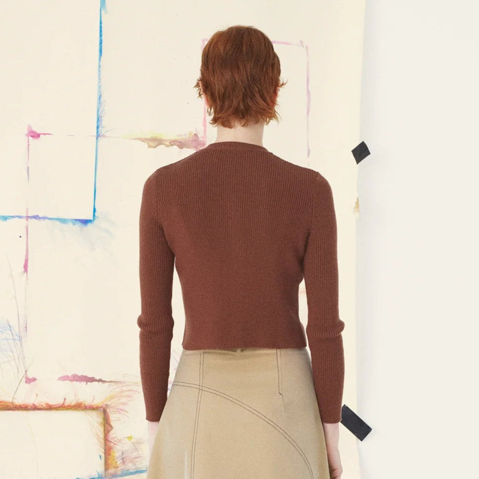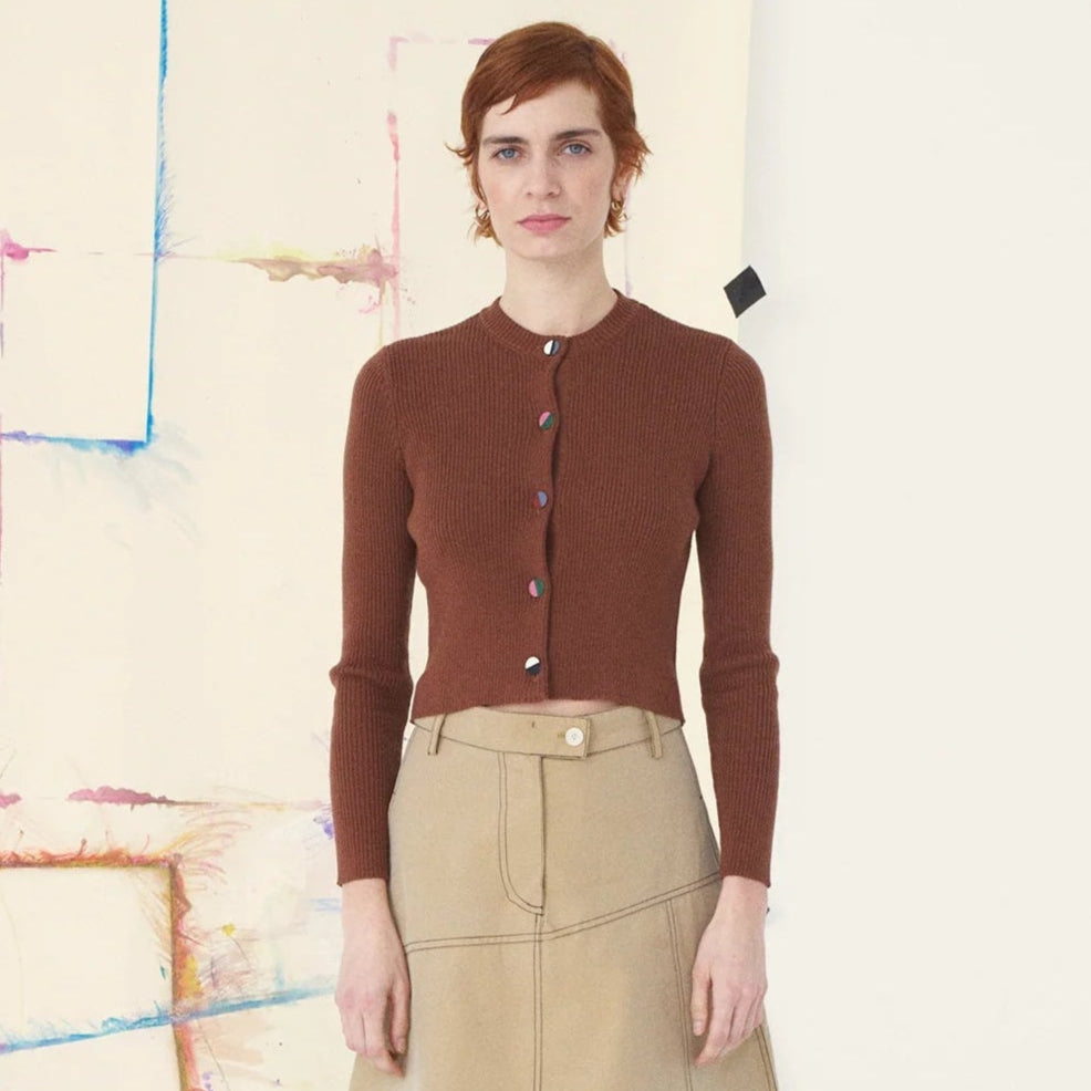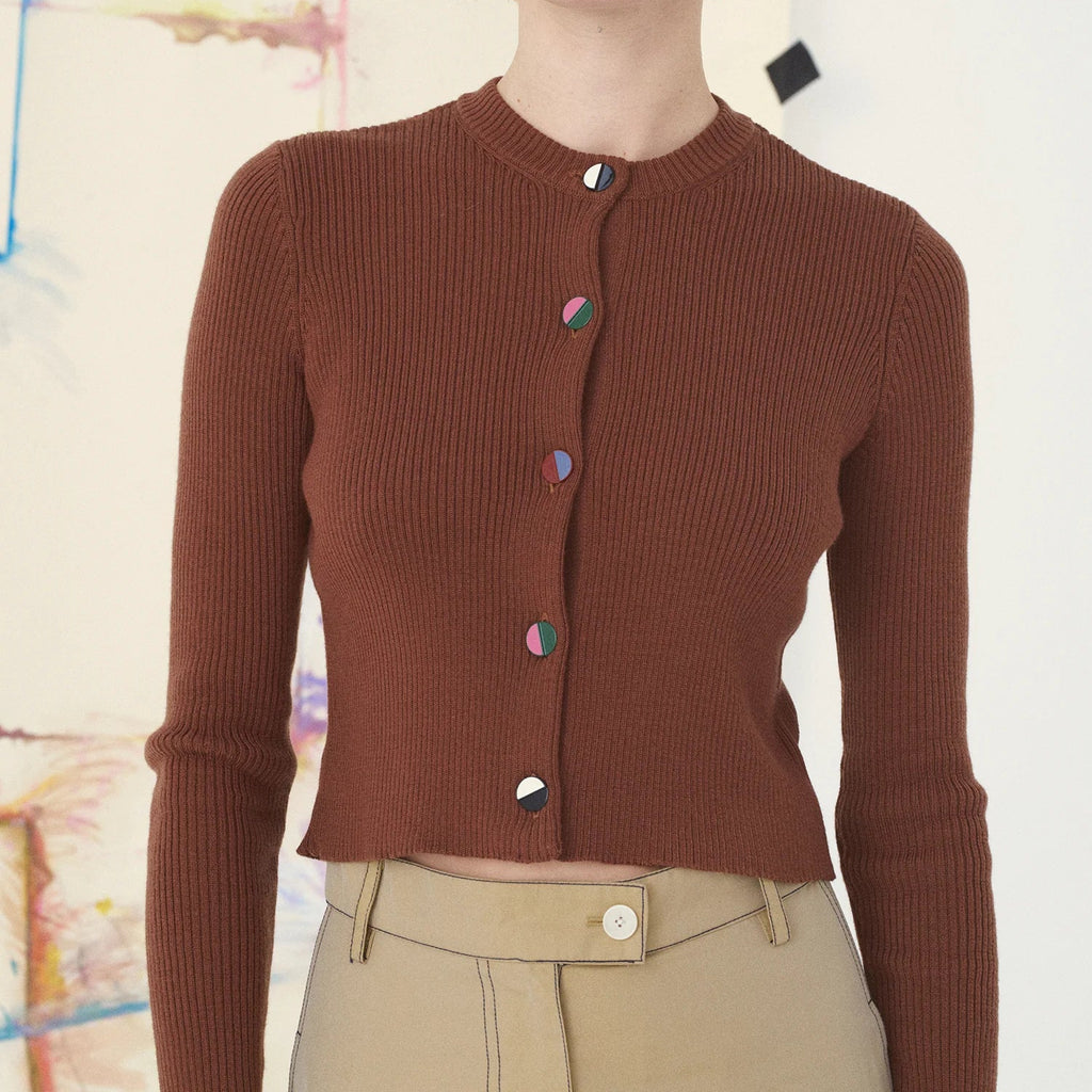 Twin Set Rib Cardigan Chocolate Brown